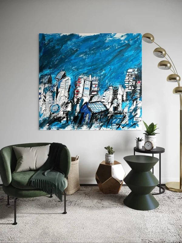 - Une peinture minimaliste : Parfaite pour les espaces épurés, elle offre un design simple et élégant qui saura rehausser l’atmosphère de votre pièce sans l’encombrer.